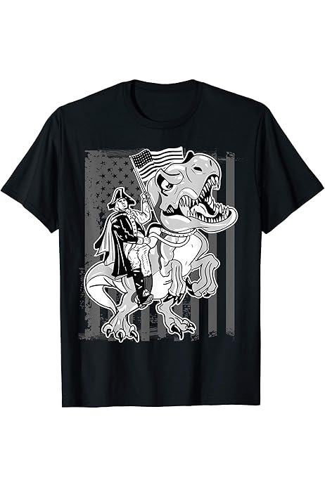 Amazon Com George Washington Riding A T Rex Dinosaur 4th Of July Usa T Shirt Clothing Shoes Jewelry